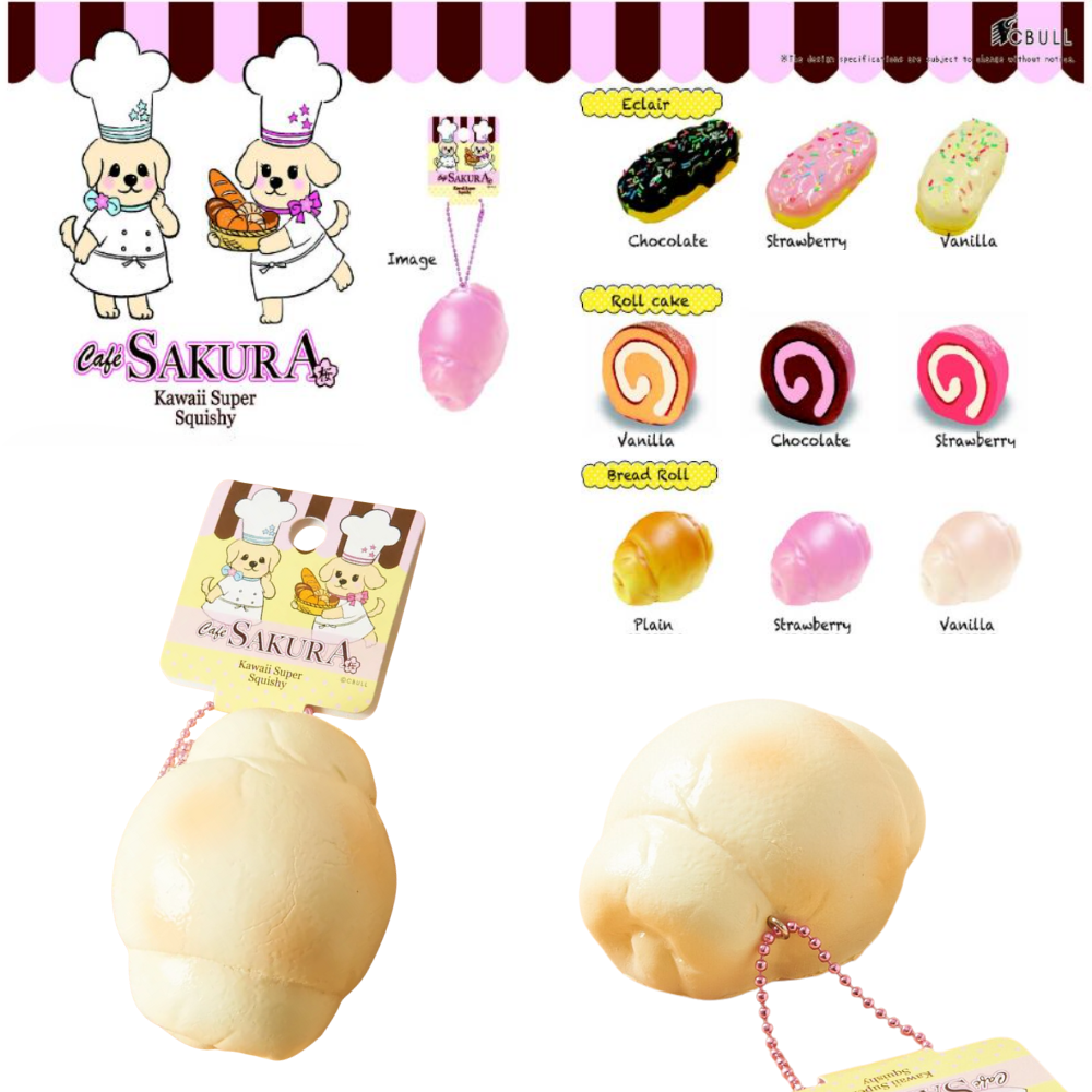 Discover the charm of the Cafe Sakura Super Squishy Series, a rare collection every squishy lover will adore! This set includes the Vanilla Bread Roll, Chocolate Roll Cake, and both Vanilla and Chocolate Éclairs — each designed with realistic textures and irresistible cuteness. These licensed squishies are super soft, slow-rising, and come in their original packaging with tags and a pink ball chain for easy display or to use as an adorable charm.