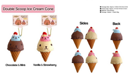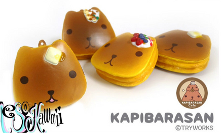 The Kapibarasan Cafe Series Squishy Collection features licensed designs such as double scoop ice cream cones, cupcakes, and pancakes, all with a variety of styles. Each item is carefully packaged and includes original tags for authenticity.