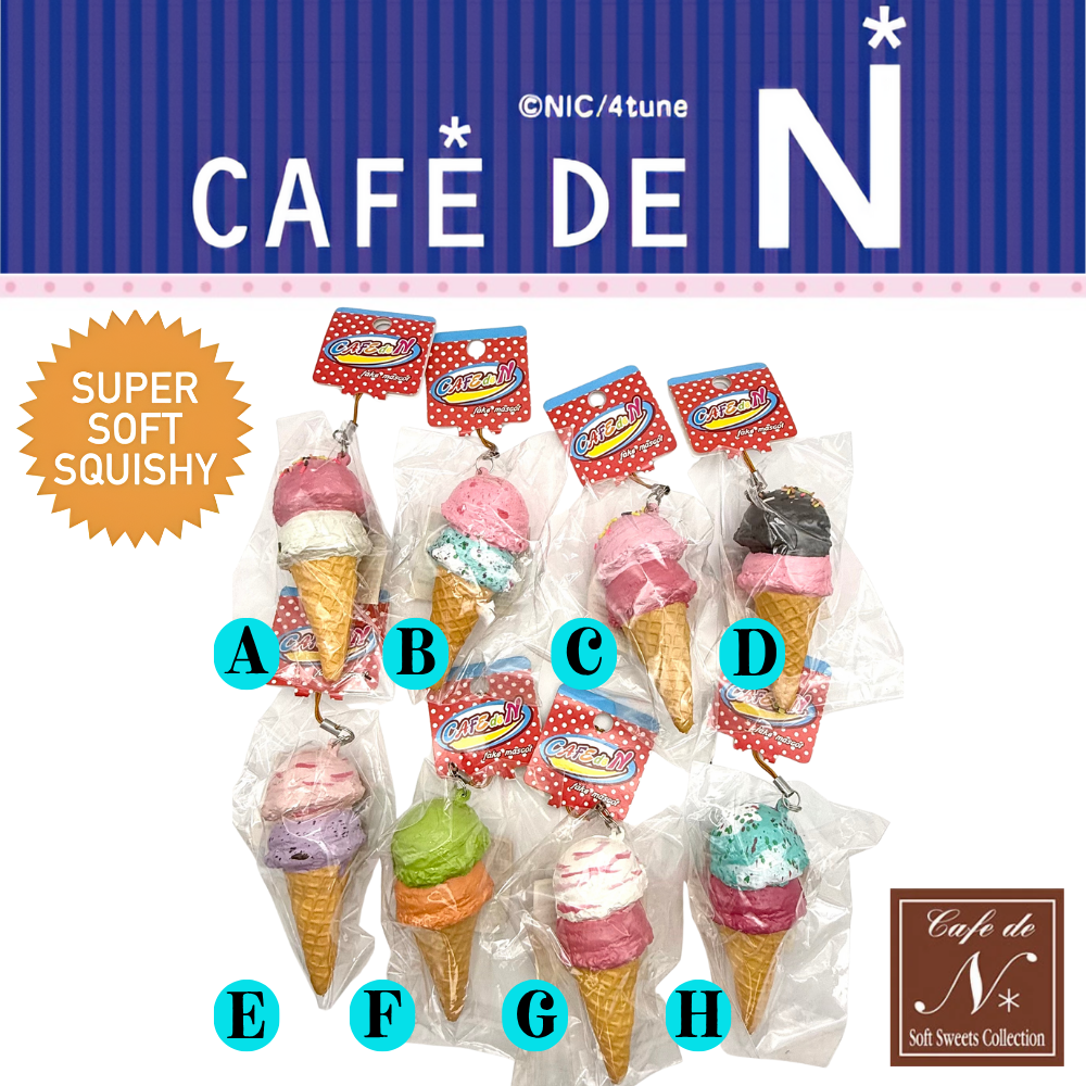 Cafe De N RARE First Edition Double Scoop Ice Cream Squishy in original packaging with tag and cell phone strap, licensed pre-production sample without barcode, collectible kawaii squishy